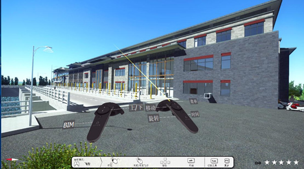 VR技術(shù)利用建筑物及設(shè)備的三維模型再現(xiàn)工程場景,使用者佩戴VR頭盔后將置身于三維場景中,觀察到立體景觀的同時(shí),可以與場景實(shí)時(shí)交互,達(dá)到身臨其境的效果。這種沉浸式的VR體驗(yàn)是有效的可視化溝通工具,把二維設(shè)計(jì)方案轉(zhuǎn)換成更容易理解的形式,呈現(xiàn)近乎真實(shí)的設(shè)計(jì)方案,為業(yè)主、設(shè)計(jì)單位和審查單位提供可視化的技術(shù)支撐。