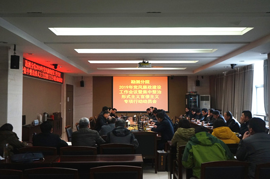 3月8日,勘測分院召開2019年黨風廉政建設工作會議暨集中整治形式主義官僚主義專項行動動員會。院黨委副書記、紀檢書記戴永法對院2018年紀檢監(jiān)察工作進行總結,安排部署2019年紀檢監(jiān)察工作任務,并宣讀了《院黨委關于開展“嚴規(guī)矩、強監(jiān)督、轉(zhuǎn)作風”集中整治形式主義官僚主義專項行動實施方案》,院黨委書記張峰出席會議并講話。
